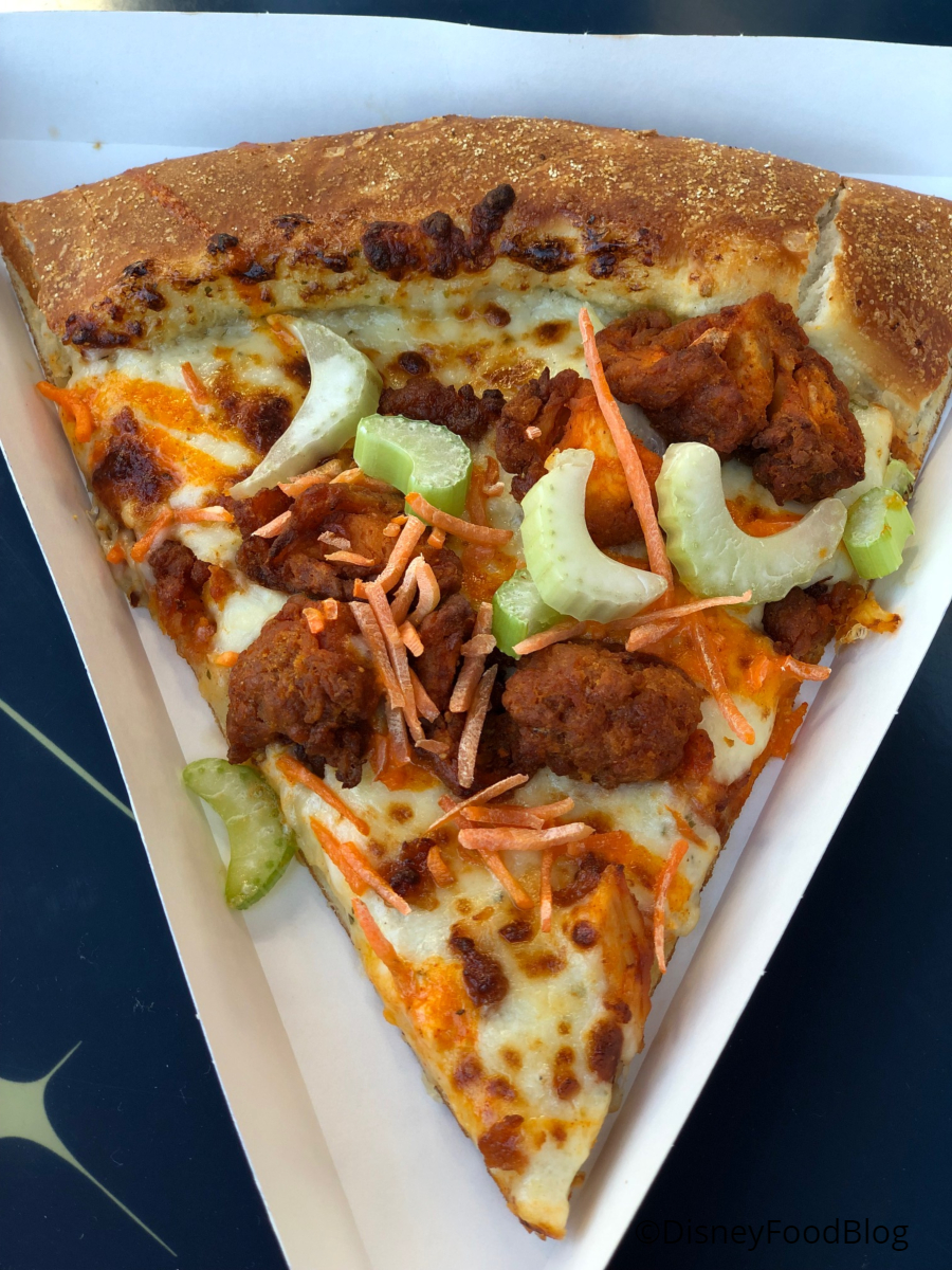 - Buffalo Chicken Pizza – Fried chicken breast pieces, buffalo sauce, and ranch dressing topped with fresh carrots and creamy buffalo sauce