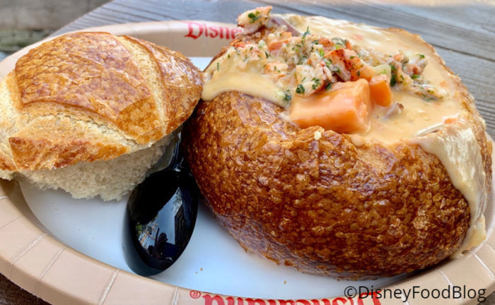 - Lobster Pot Pie Soup – Lobster, red potatoes, carrots, celery, and herbs in a rich seafood cream sauce served in a bread bowl