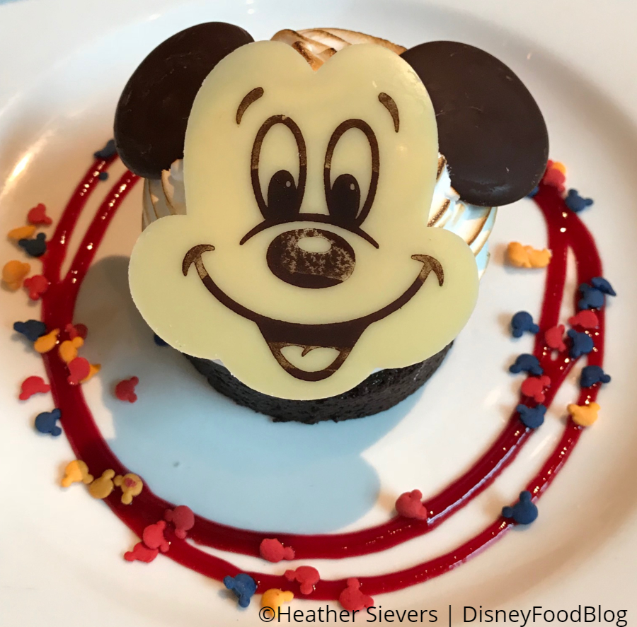 - Mickey Mouse Club Hat Dessert – Chocolate truffle mousse dome with vanilla bean crème brûlée center, Mickey ears, and Mickey Mouse Club logo