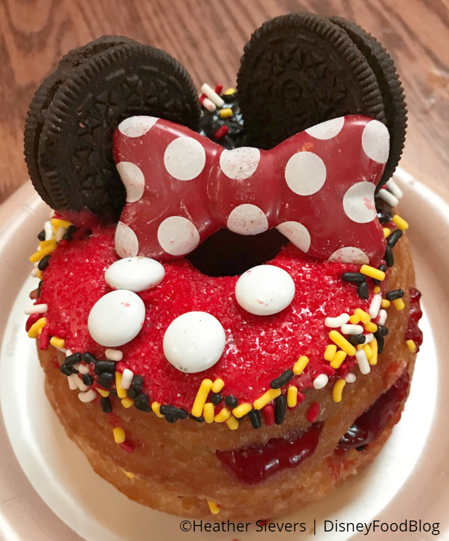 - Mickey Fun Wheel Cookie – Sugar cookie filled with raspberry jelly topped with colored chocolate drizzle and Mickey Fun Wheel chocolate decor
