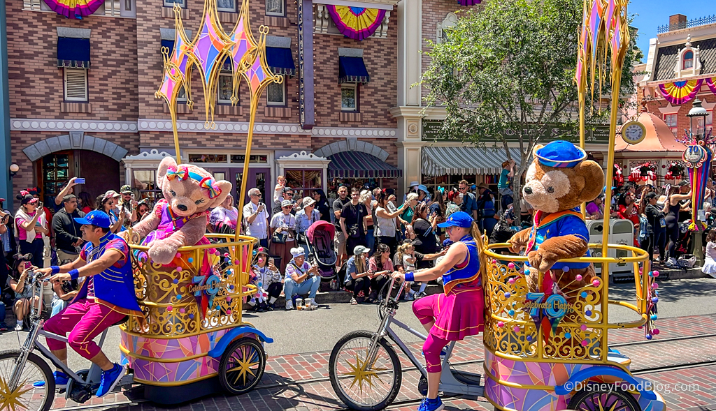 They are also part of a NEW character cavalcade in Disneyland park: Mickey and Friends Celebrate Happy!
