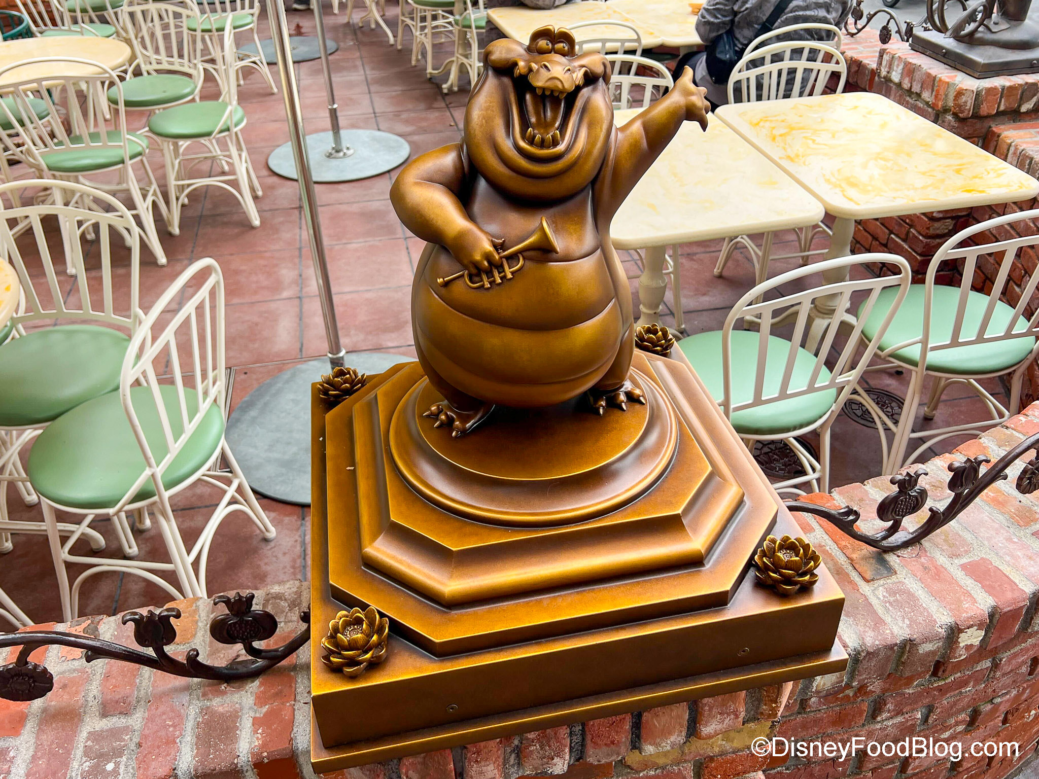 - New Louis statue outside of Tiana’s Palace