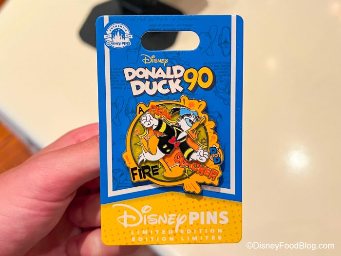 - Donald 90th Anniversary Fire Quacker Pin — $19.99