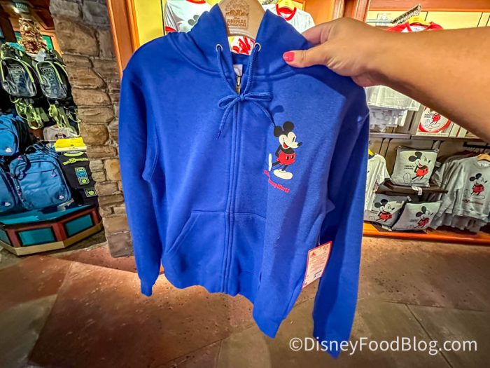 - Mickey Mouse blue zippered jacket with hood – $59.99