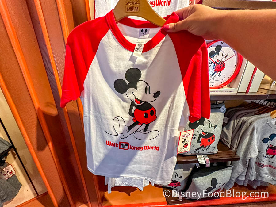 - Mickey Mouse white and red quarter-length baseball sleeve shirt – $34.99