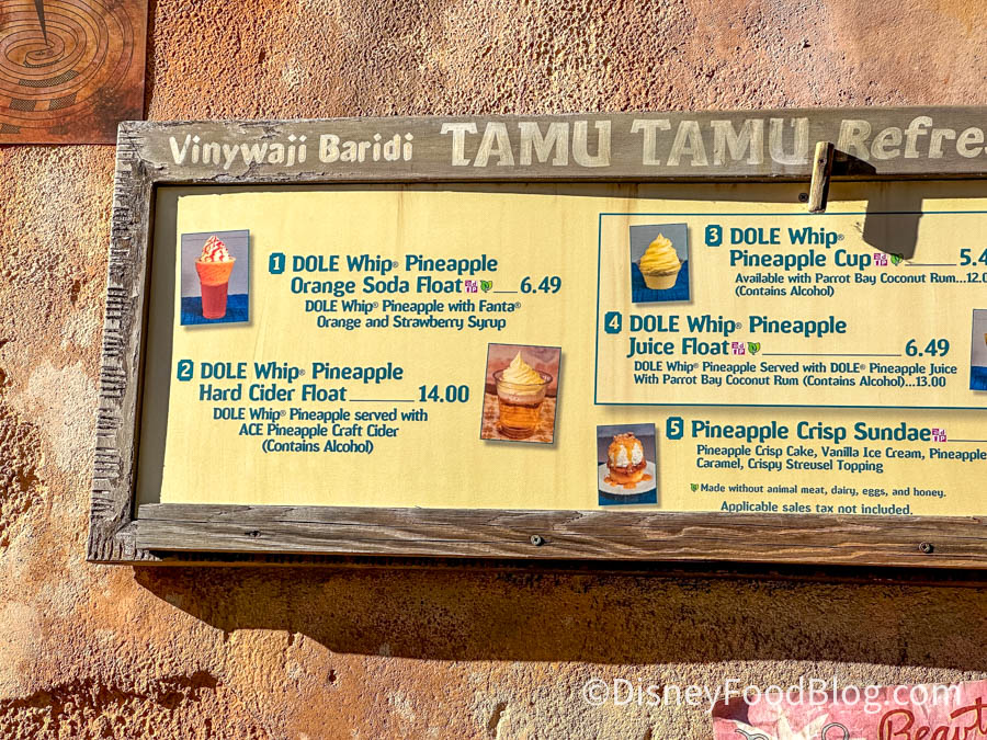 The Dole Whip Orange Soda Float also replaced the Simba Sunset when it came off the menu and The Dole Whip Hard Cider Float is no longer compatible with the DDP snack entitlements