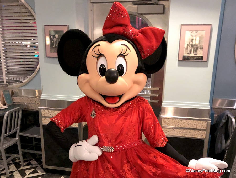 Minnie Mouse is the hostess for various “dinner parties” throughout the year, and she’s often joined by Mickey, Goofy and Pluto!