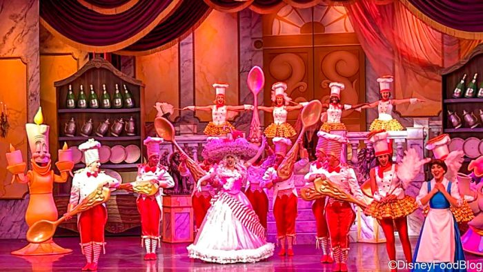 Guests can see all of their favorites from Beauty and the Beast, including Belle, Lumiere, Cogsworth, Chip, and Mrs. Potts, performing beloved songs from the film during Beauty and the Beast — Live on Stage!