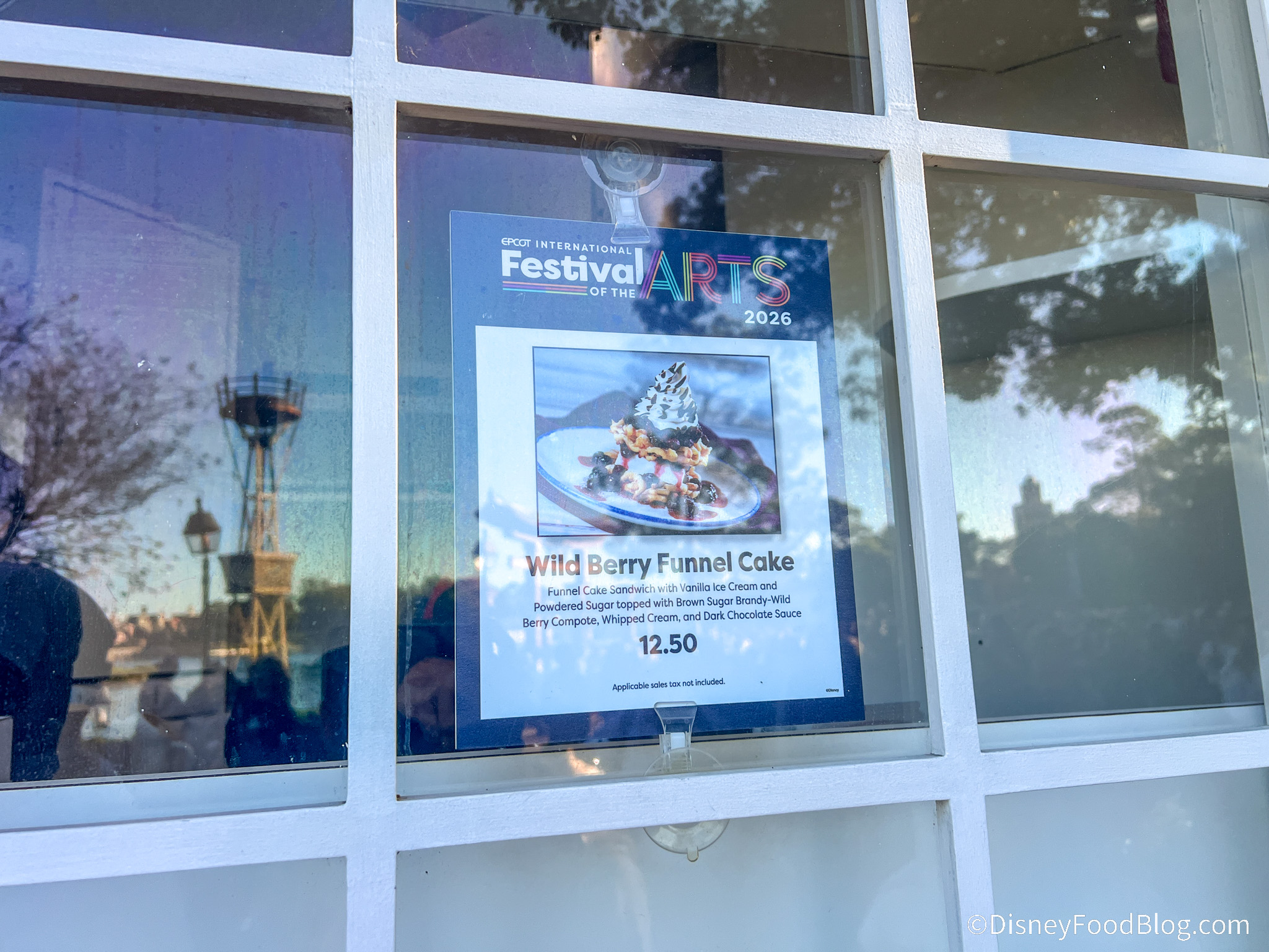 - Wild Berry Funnel Cake: Funnel cake sandwich with vanilla ice cream and powdered sugar topped with brown sugar brandy-wild berry compote, whipped cream, and dark chocolate sauce (New), $12.50