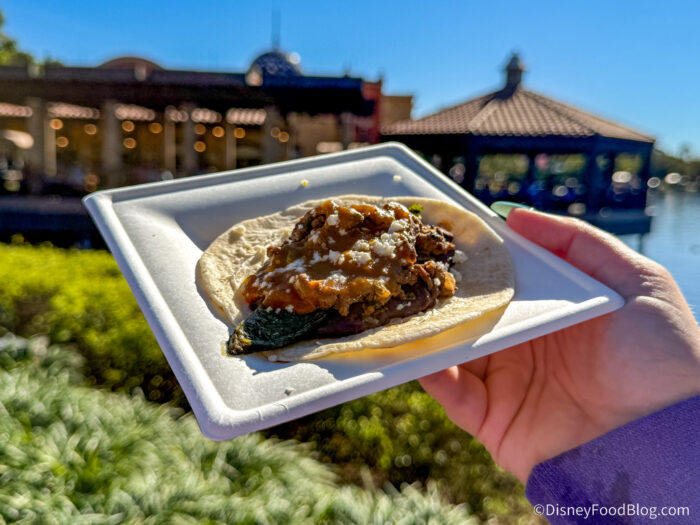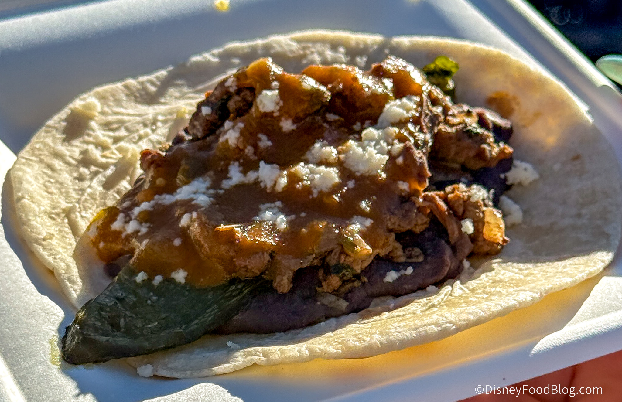 - Chile Relleno Taco: Flour tortilla filled with seared beef tenderloin, poblano pepper, black beans, and salsa roja (New) — $8.75, DDP Snack Eligible
