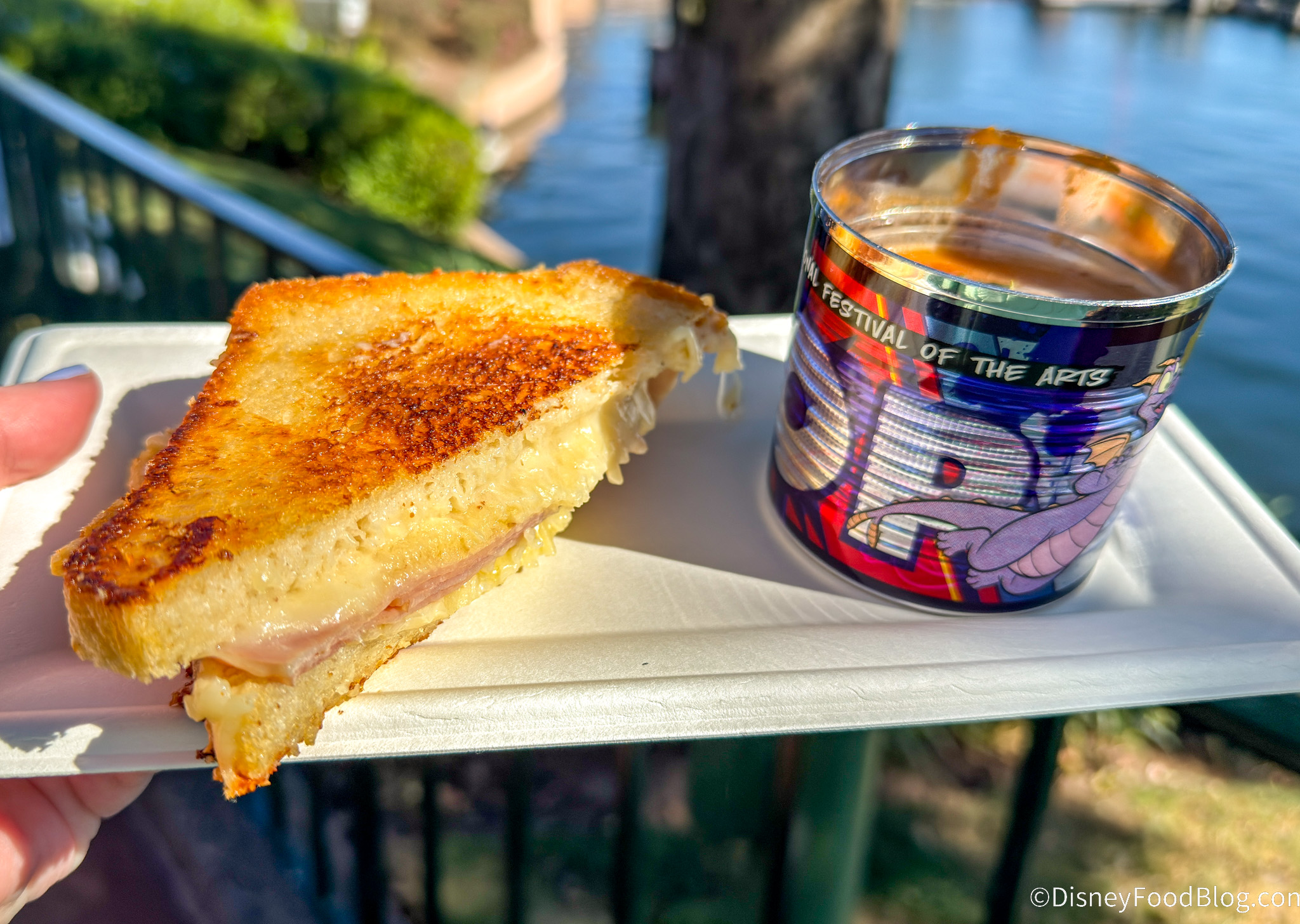 - Croque Monsieur-inspired Grilled Cheese with Black Forest ham, Gruyère, and béchamel sauce served with tomato soup (New) – $6.79, DDP snack credit eligible