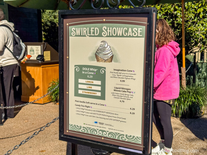 - Imagination Cone: Pink vanilla soft-serve in a lavender cone, “sparks” of imagination, and white chocolate Figment wings — $6.99, DDP Snack Eligible