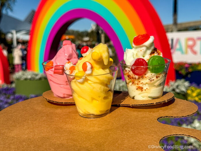 - Candy Trio Flight: DOLE Whip Strawberry with STARBURST MINIS fruit chews, DOLE Whip Lemon with SKITTLES POP’d Original Freeze Dried Candy, and DOLE Whip Lime with chili-lime seasoning and LIFE SAVERS gummies, $8.29, DDP Snack Eligible