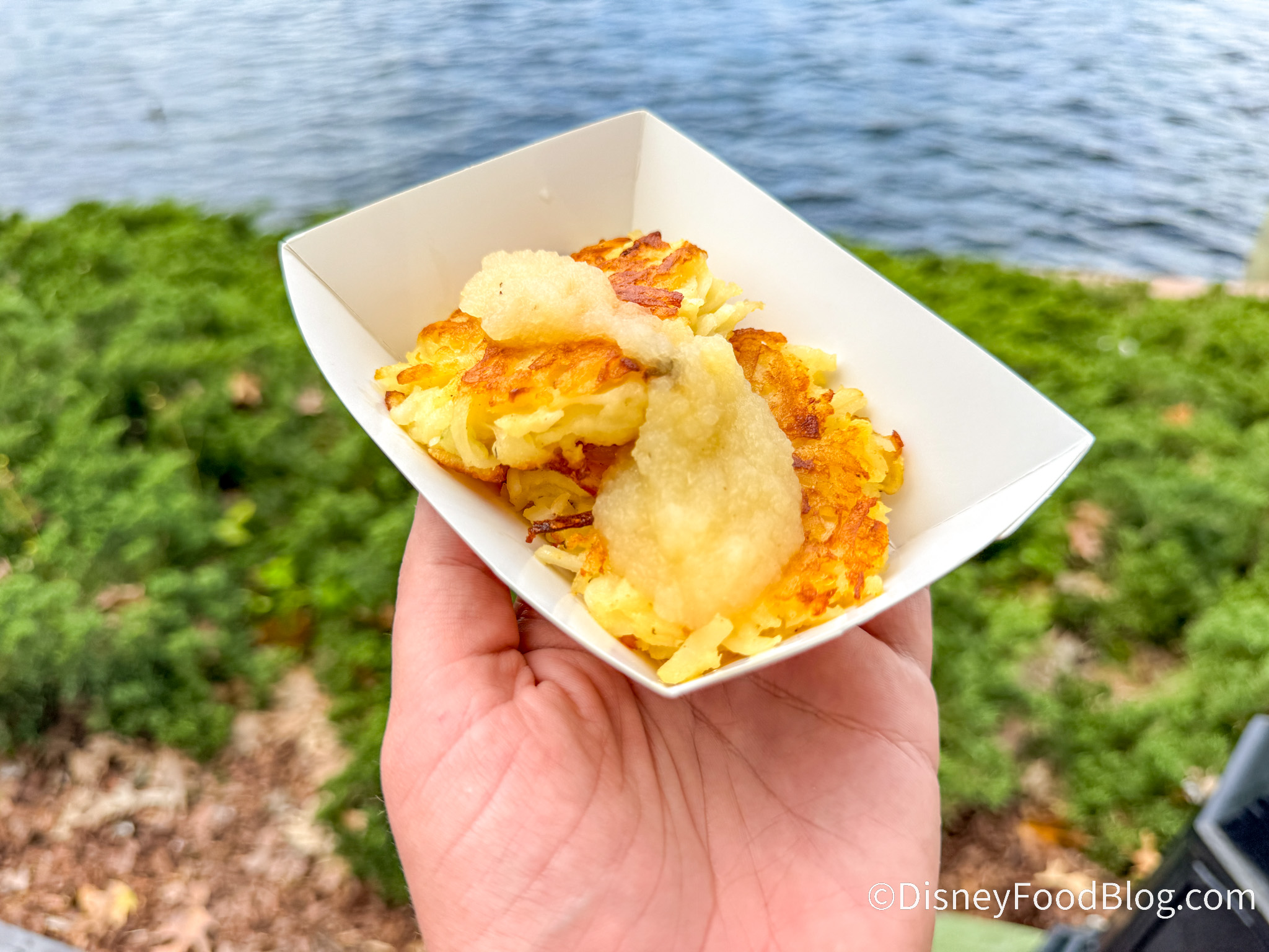 - Potato Pancakes with house-made applesauce (Plant-based; Garden Graze item) — $5.25, Disney Dining Plan snack credit eligible
