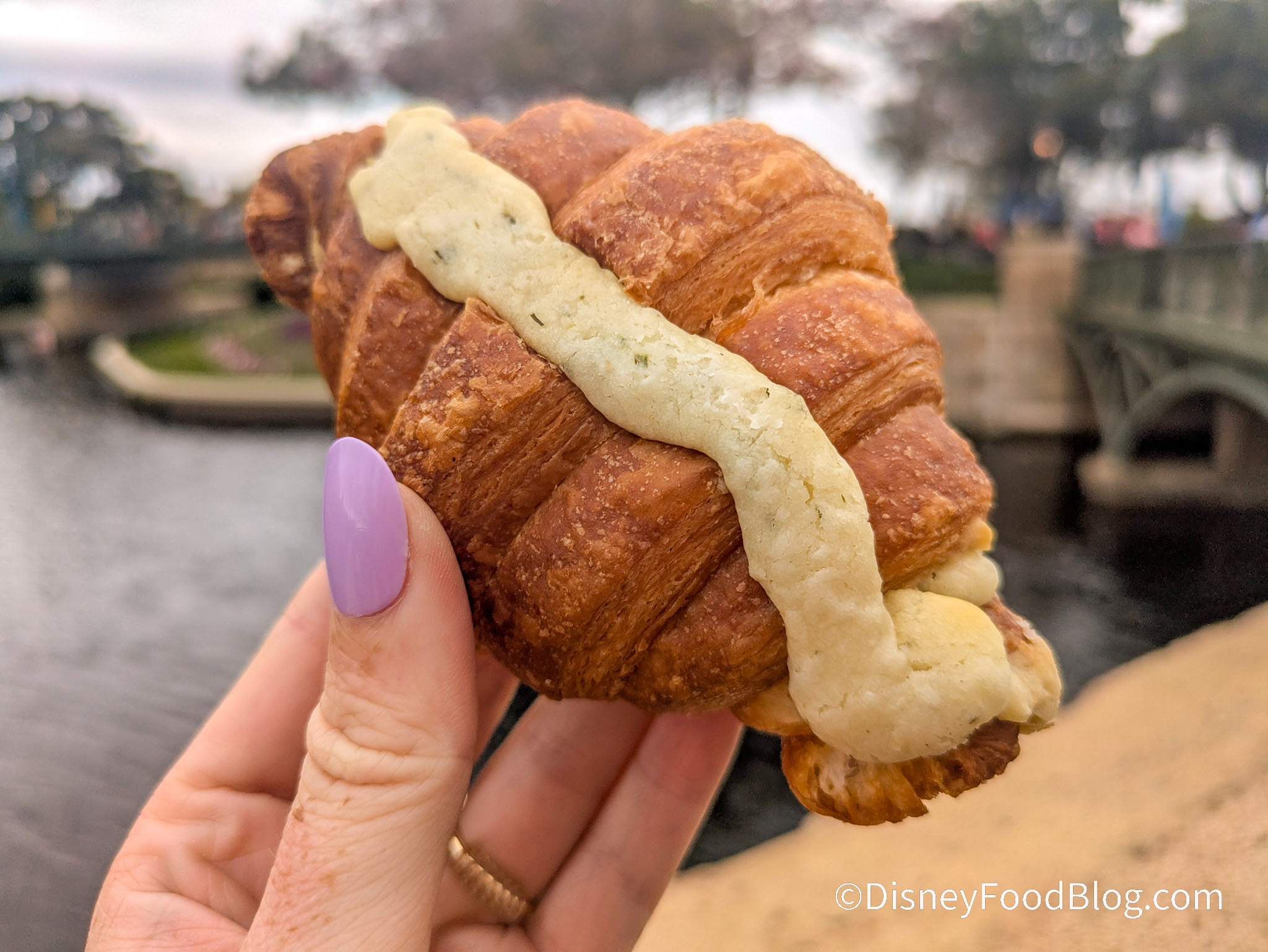 - Croissant au Fromage de Chèvre, Herbes et Ail Rôtie: Croissant with goat cheese, herbs, and roasted garlic — $7.25, DDP snack credit eligible