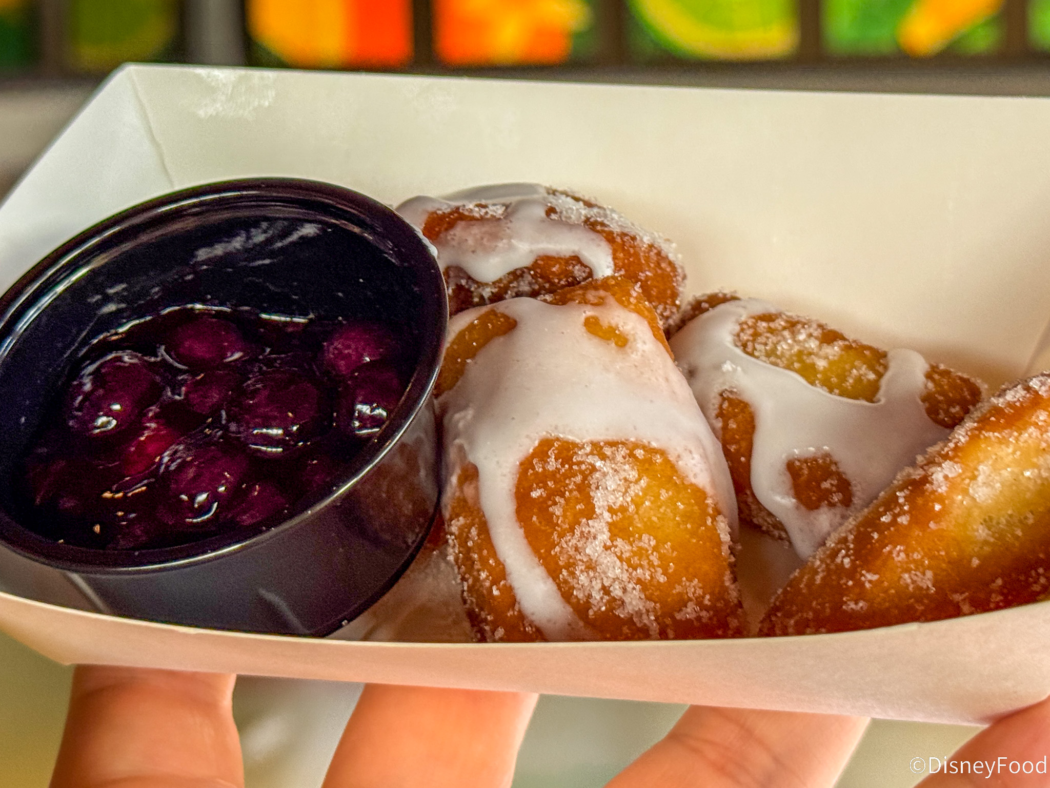 - Cinnamon Beignets tossed in lemon sugar, lemon glaze, and honey mead-blueberry compote (New) — $5.29, DDP snack credit eligible