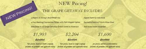 - Grape Getaway vacation packages will be available for those who don’t already have reservations, and non-room packages will also be available for those who have already booked reservations. Pricing is $1600 per person for these packages.