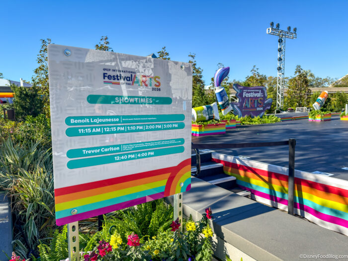 The 2026 EPCOT International Festival of the Arts is ON from January 16th – February 23rd, 2026. This EPCOT Festival — the park’s first in the calendar year — made its debut in 2017, and celebrates three artistic disciplines: the Culinary, Visual, and Performing Arts!