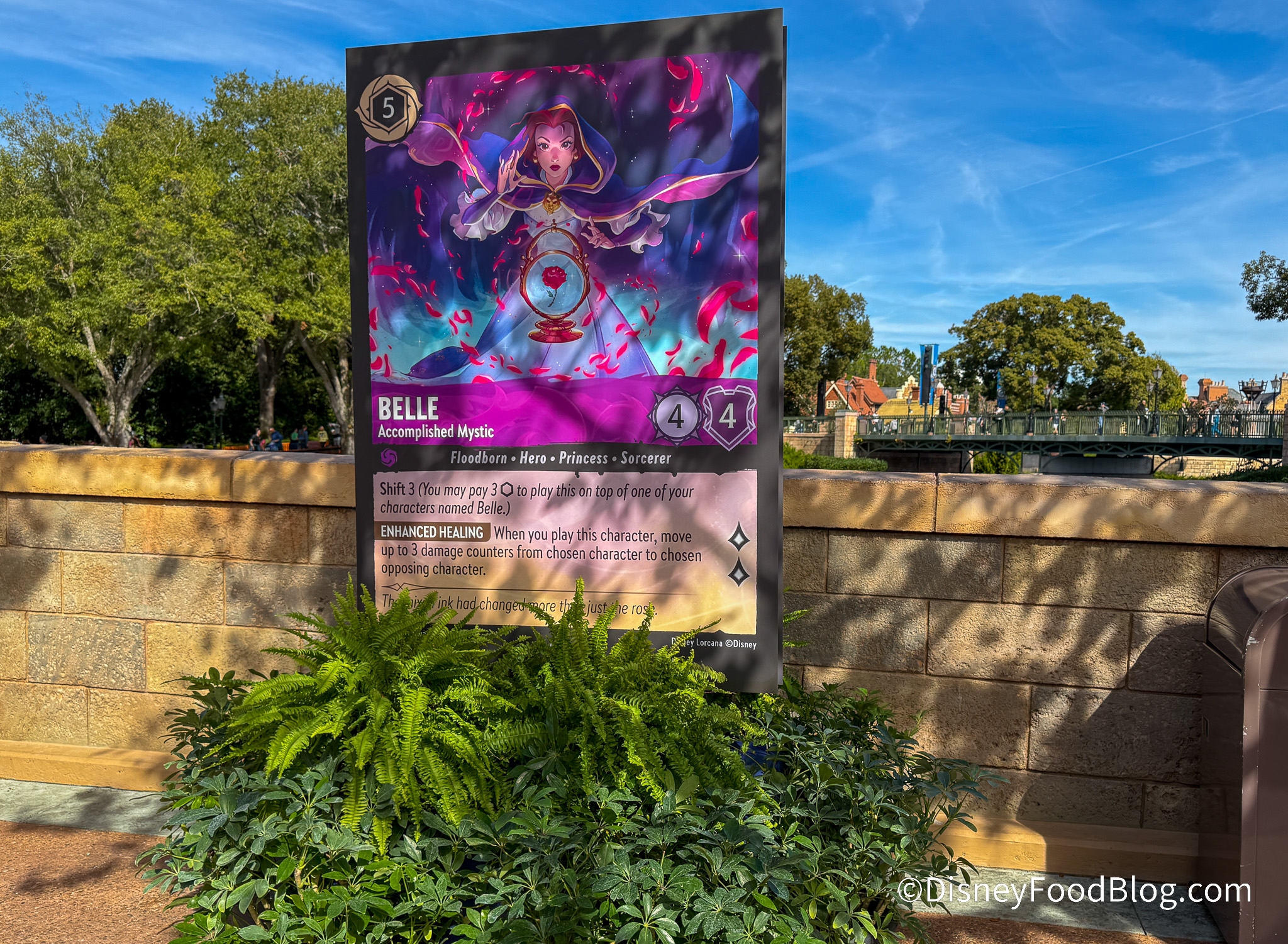 - NEW in 2026: Bridge to World Showcase: A Disney Lorcana Trading Card Game photo op, featuring a scene from Fabled (one of the most recent Disney Lorcana sets)