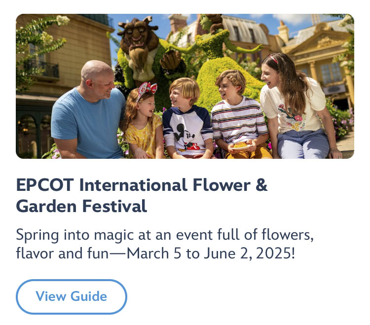 The Flower and Garden Festival is an absolute highlight of Spring in Walt Disney World, and has been since it made its debut in 1994! The 2026 EPCOT Flower & Garden Festival will run from March 4th through June 1st, 2026. Stay tuned for more details for the 2026 Festival! In the meantime, you can find our 2025 Flower and Garden Festival coverage below to learn everything you need to know about this event as we await more 2026 information.