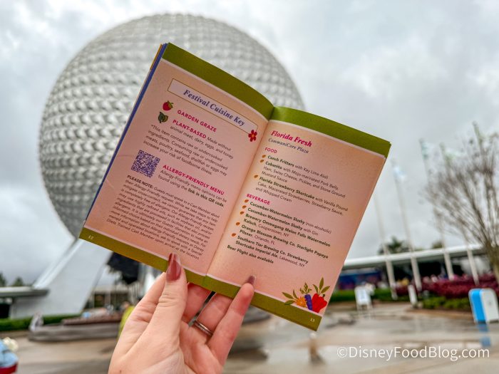 There is also an interesting feature on the Disney World website which might be helpful to guests with food allergies or intolerances: you can check out the Allergy-Friendly Menus at the Flower & Garden Festival. And, guests in the park can scan the QR code provided in the Festival Passport to find the same information.