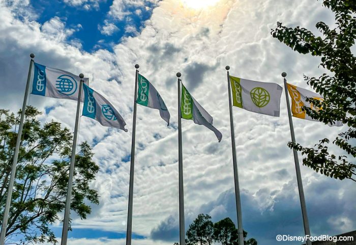 Guests will also notice the addition of 12 flags (six designs, two of each) on flagpoles flanking Spaceship Earth.
