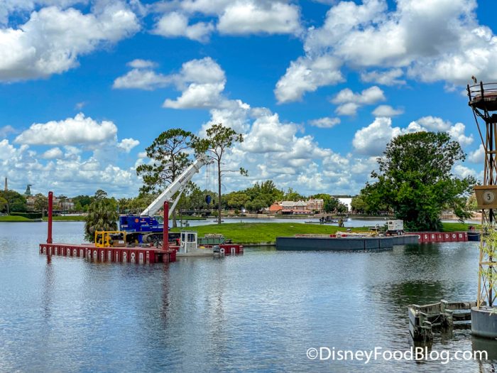We noticed that the crane in the World Showcase Lagoon is still hanging around for now.