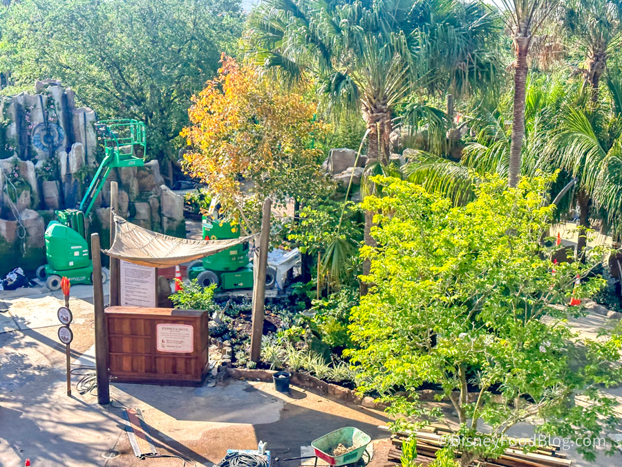 - Refreshment Station has not opened yet but you can see some benches and tables in the area as construction here moves forward