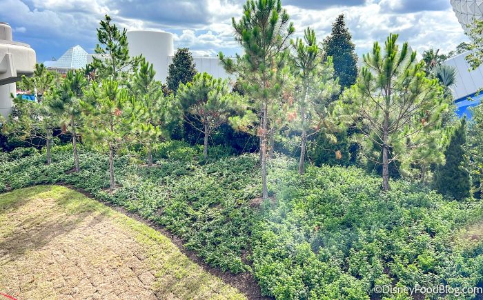 We spotted some hedges in front of Mission: SPACE. Disney appears to be refurbishing the facade of this building, but the ride is still open as they work.