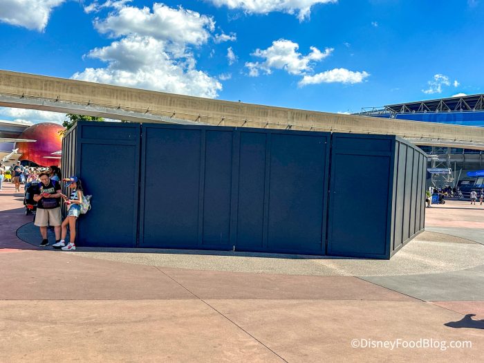 The World Celebration Popcorn Cart is still under construction, but looks like it got a new blue paint job to match the area it’s in.