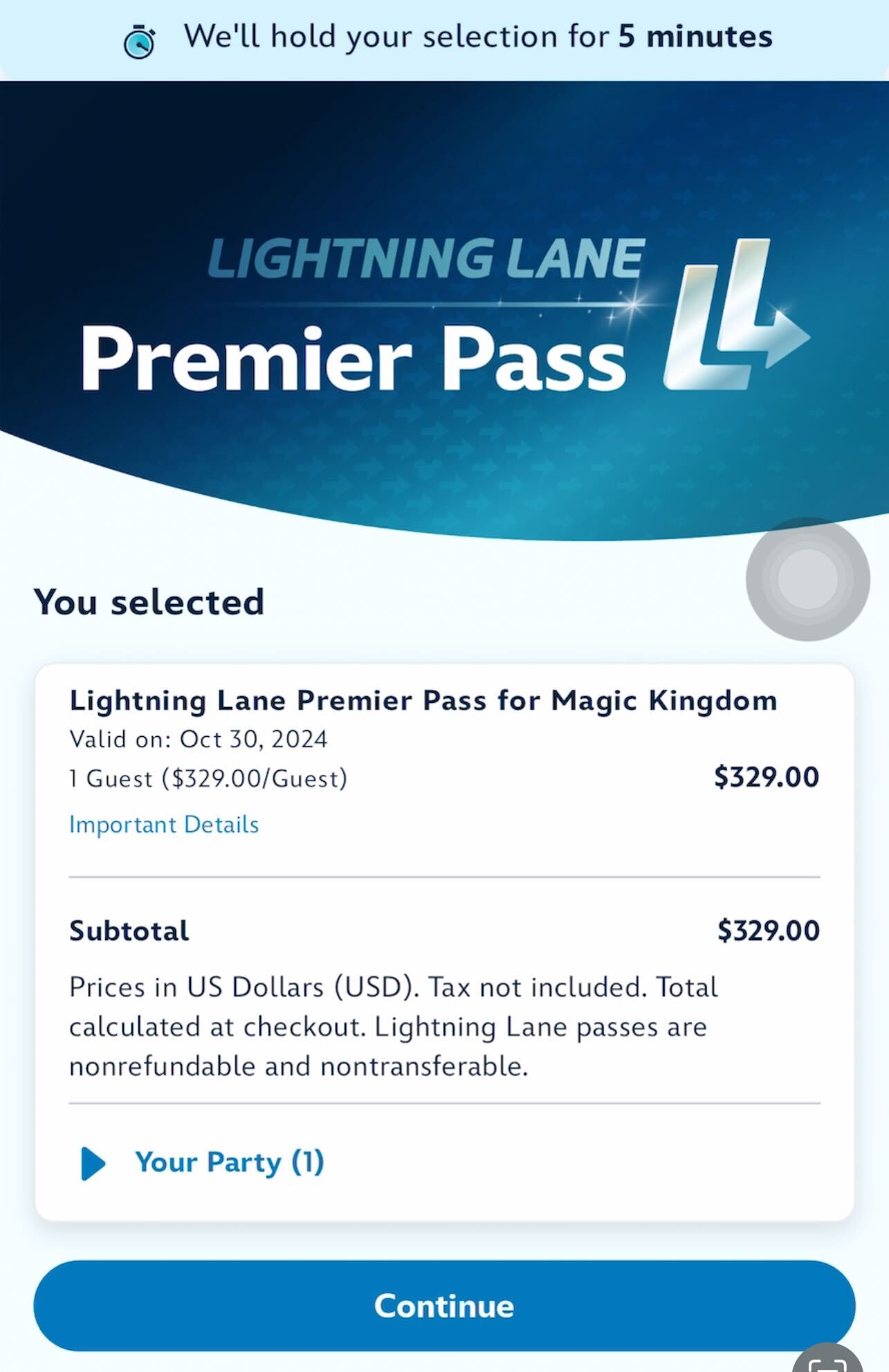 You will then have five minutes to complete your purchase. Simply confirm the details and hit “Continue.” Then, you can check out.