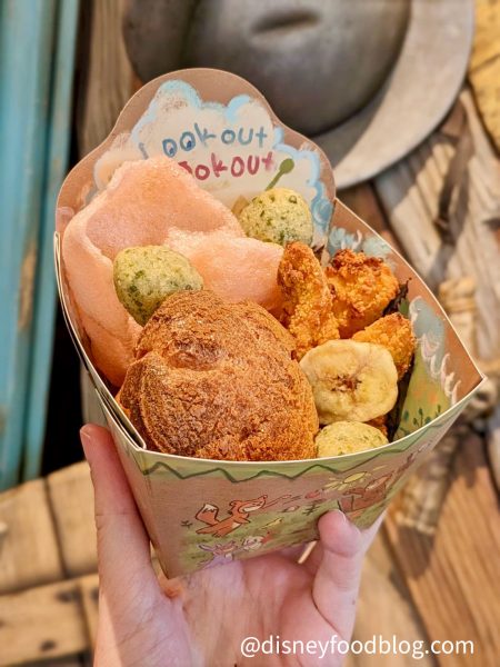 The boxes come complete with chicken tenders, seaweed fritters, banana chips, and shrimp chips. You can follow up the box with a Lookout Brownie!