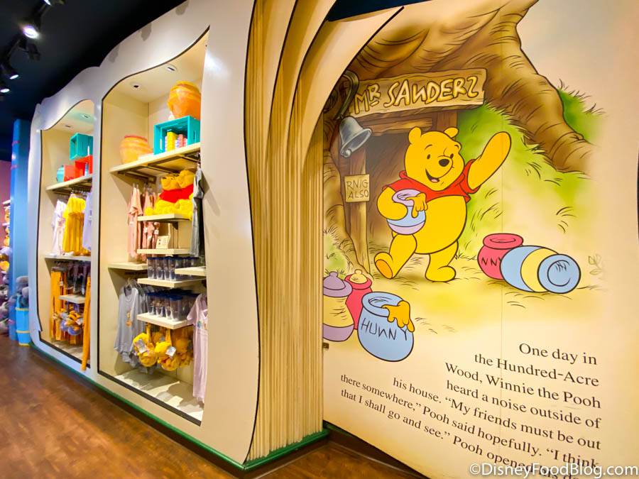 Find stuffed animals and toys in tribute to Winnie the Pooh and pals at Hundred Acre Goods (exiting The Many Adventures of Winnie the Pooh).