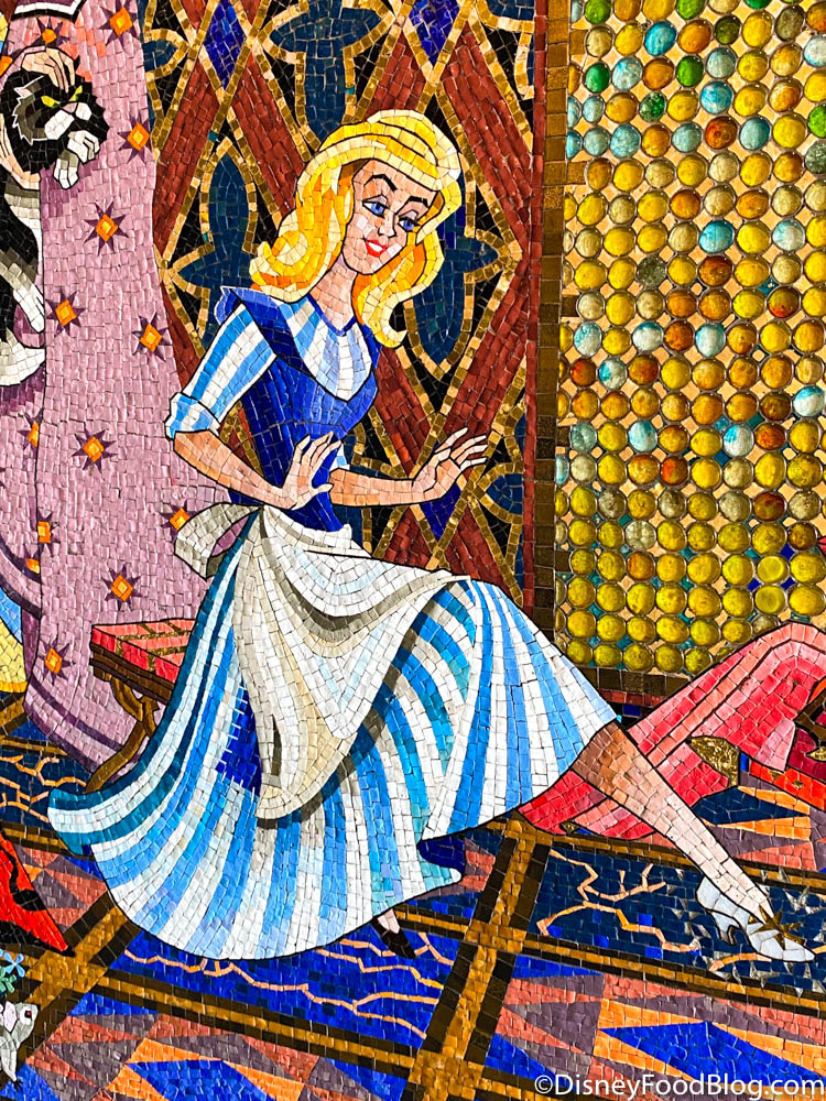 The gorgeous and colorful mosaics tell the story of Cinderella in truly stunning detail, beginning with her time with Lady Tremaine (Cinderella’s stepmother) and Anastasia and Drizella (her stepsisters).