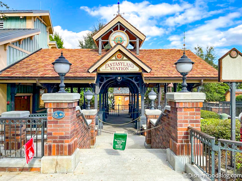ALL ABOARD! The Fantasyland Station is one of three stops along the Walt Disney World Railroad. However, while construction on Frontierland continues, the Walt Disney World Railroad station in Frontierland will be closed — but the train will still be available to take guests between the Main Street, U.S.A., and Fantasyland stations. It began operating in “shuttle mode” on July 7th. Instead of making the full loop around the park, the train will go back and forth between the two stations.