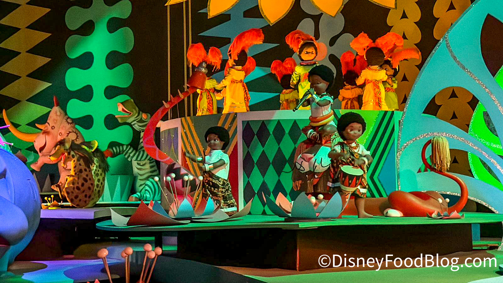 You’ll sail through the seven continents surrounded by dancing dolls dressed in beautiful costumes representing various counties and cultures as you enjoy the distinctive design work of Mary Blair and the attraction’s signature song by the Sherman Brothers. And speaking of the iconic tune…