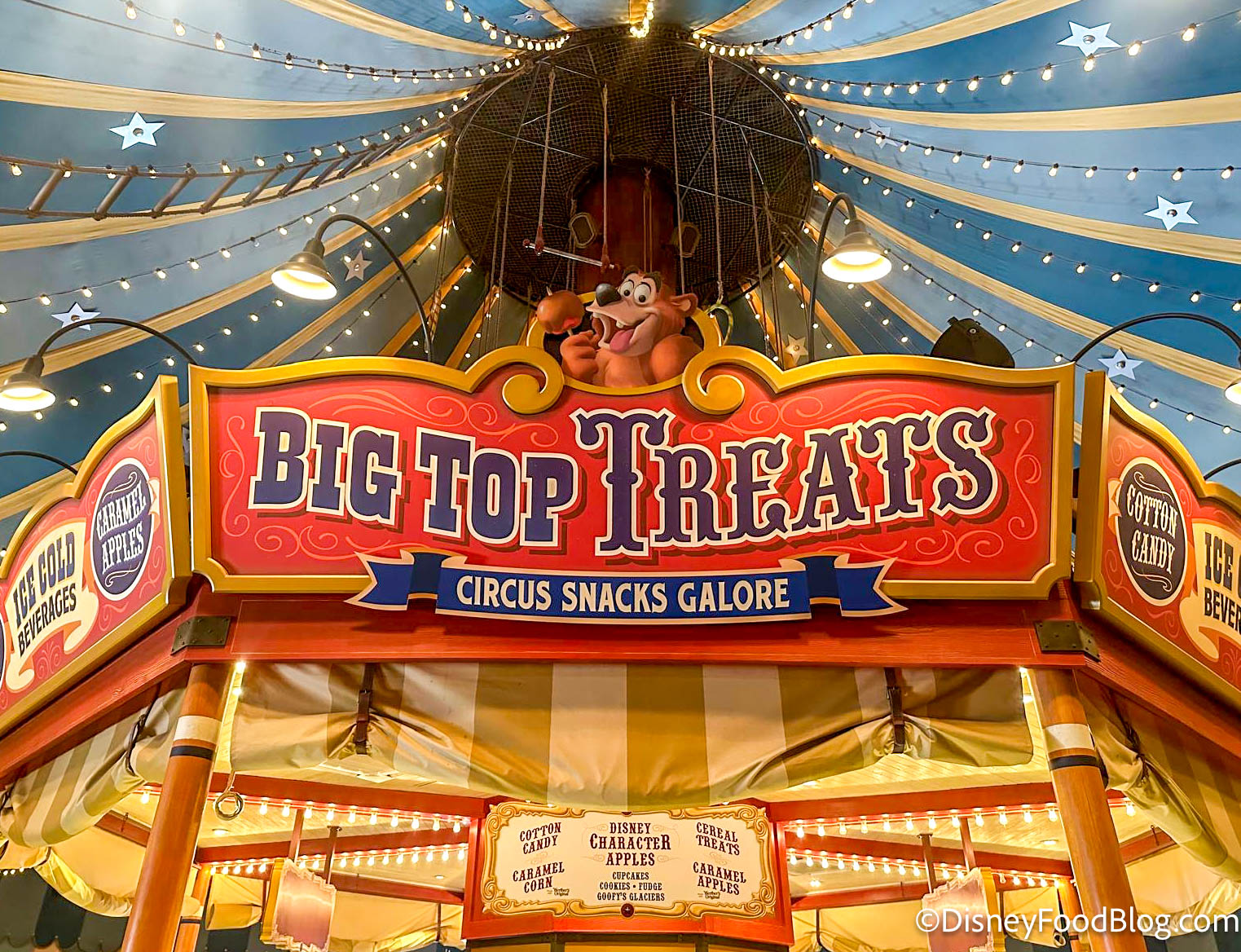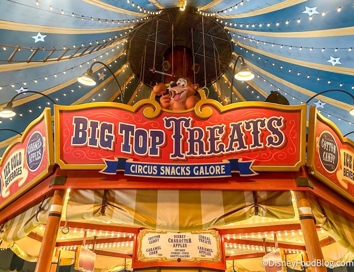 Look no further than under the BIG TOP in Storybook Circus for Big Top Treats! This is the place to find house-made caramel corn (!!) plus other yummy confectionery classics like cotton candy, Disney character apples, and more.