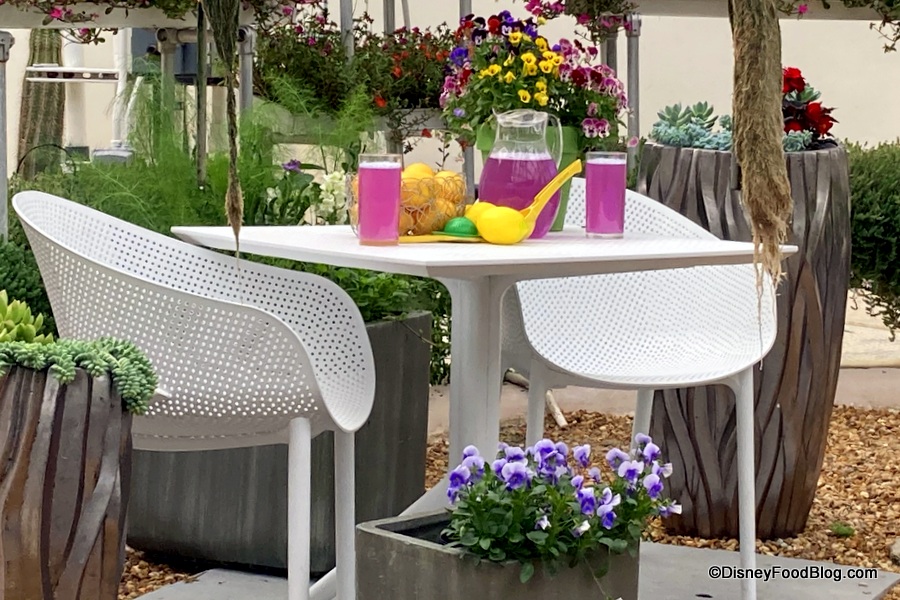 2022 epcot flower and garden festival living with the land edible garden overlay violet lemonade display By Wendy Leave a Comment
