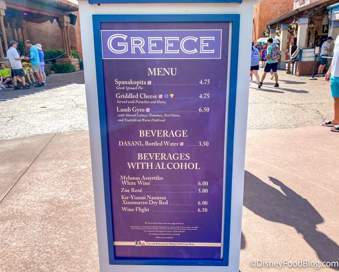 2022 EPCOT Food and Wine Festival Greece Booth Menu
