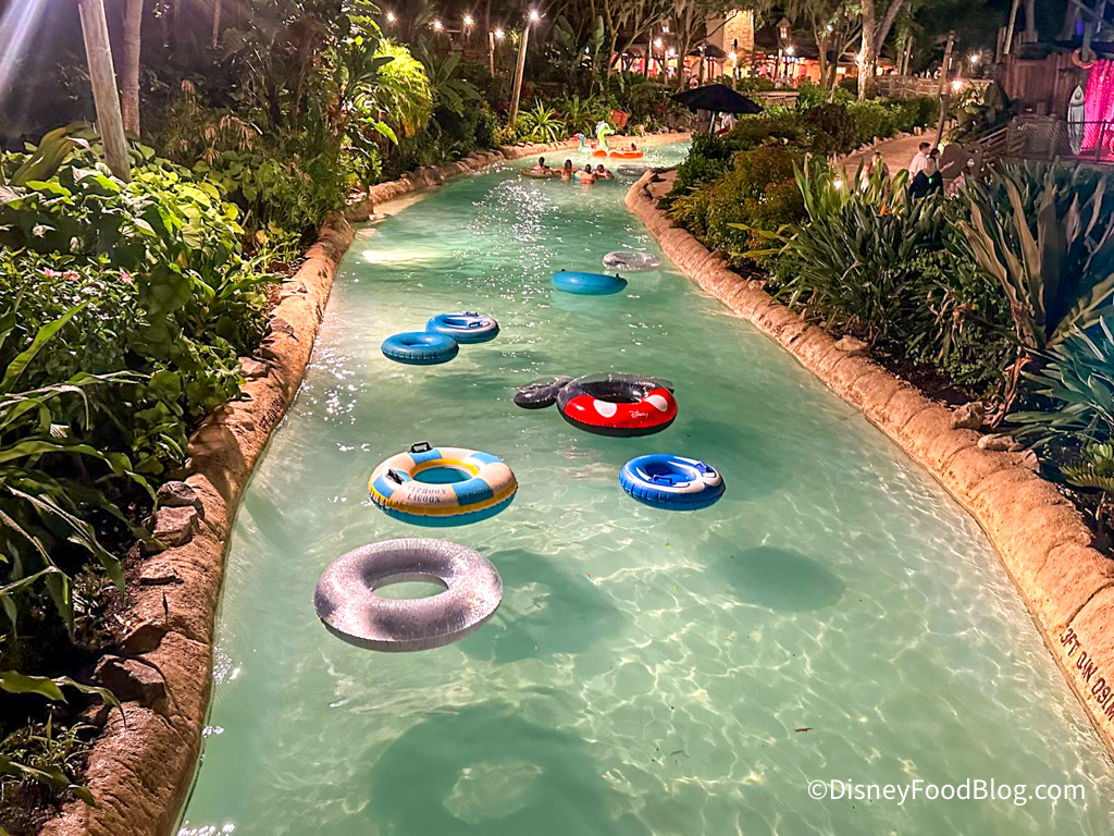 Attractions include the Typhoon Lagoon Surf Pool, Castaway Creek, raft rides and waterslides… and they are illuminated for the nighttime just for the event!