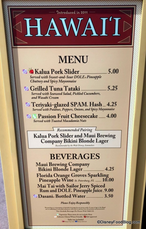 2018 Epcot Food and Wine Festival Hawai’i Booth Menu