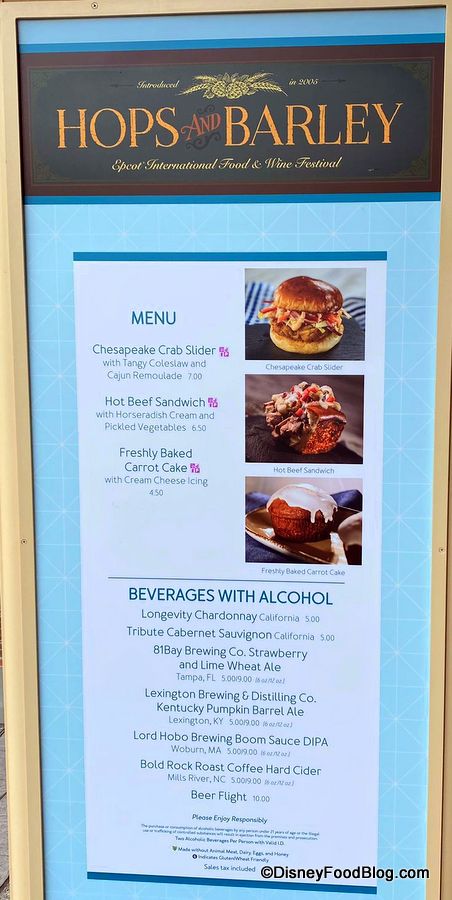 2022 EPCOT Food and Wine Festival Hops and Barley Booth Menu