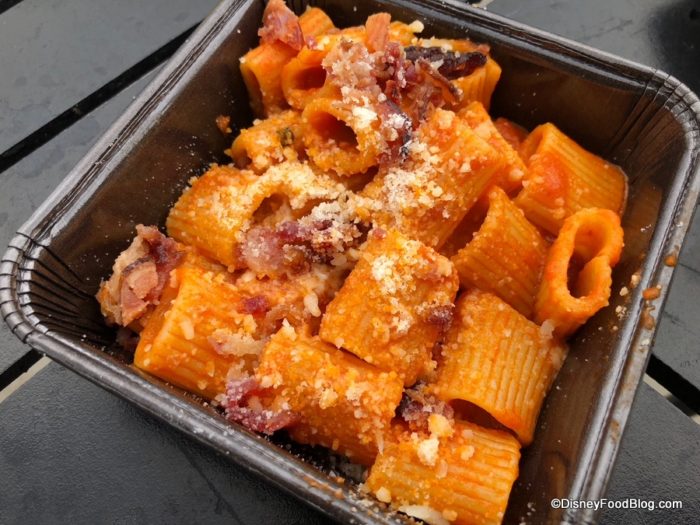 - Mezzi Rigatoni: Vodka Sauce, Crispy Pancetta and Parmesan Cheese (KA) – $7.00, DDP Snack Eligible