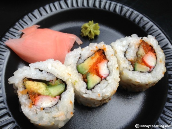 - California Roll (Avocado, Cucumber, Crab, Mayonnaise, Smelt Roe Rolled in Sushi Rice and Seaweed) – $3.95, DDP Snack Eligible
