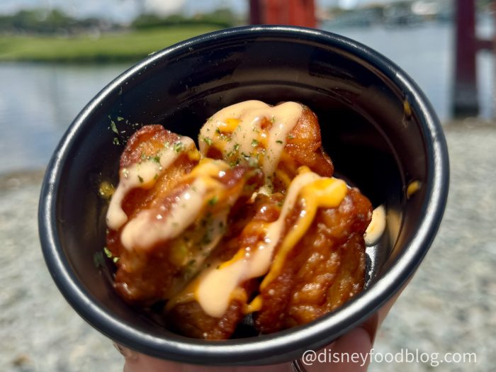 - Osakana Karaage: Crispy-fried pollock with spicy mayonnaise and a sweet-and-creamy yuzu sauce (New) — $8.50, DDP Snack Eligible