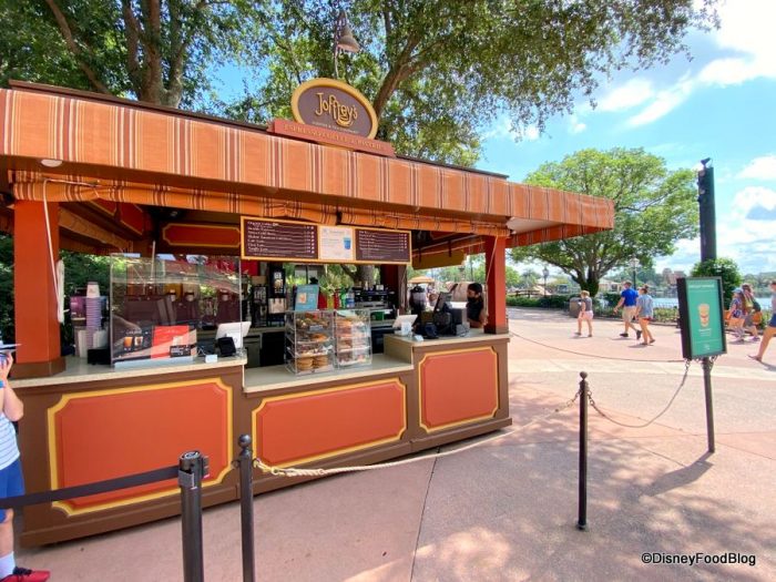 There is a Joffrey’s kiosk greeting guests as they step onto the World Showcase Promenade.