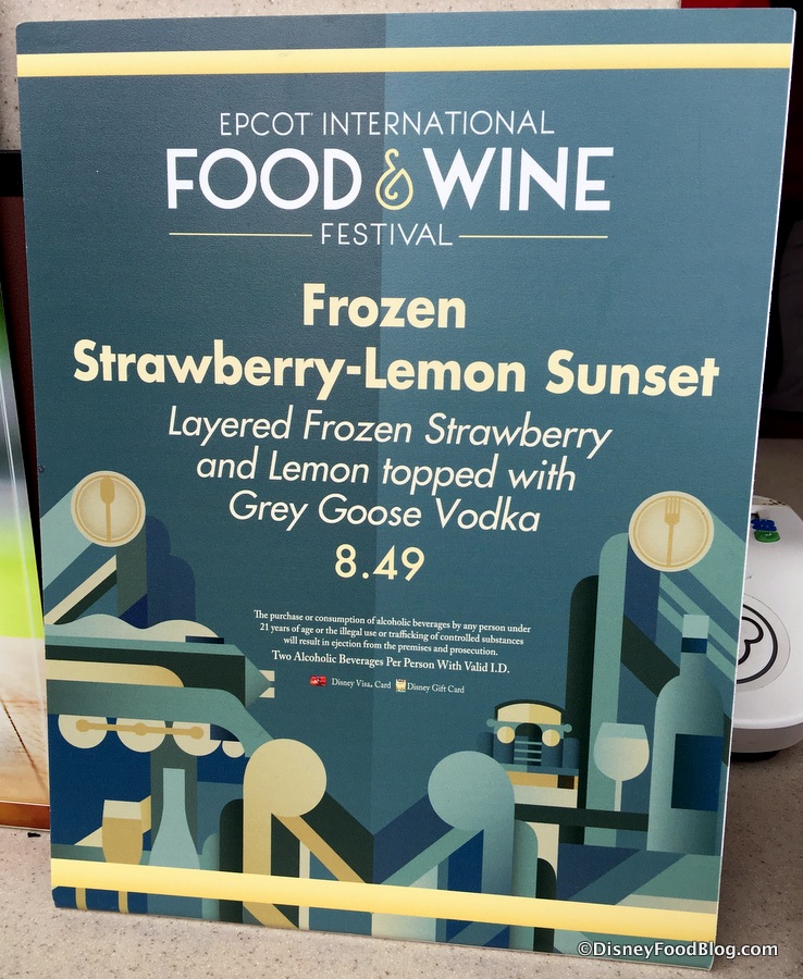 - Frozen Strawberry-Lemon Sunset: layered frozen Strawberry and Lemon topped with Grey Goose Vodka– $8.49