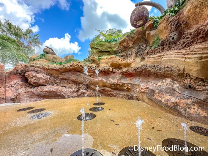Now, you really don’t have to get too wet to experience any of these water features — most of them are similar to walking through a mister that you’ll find in other areas of the parks. But, it can get hot in the Florida sun, and if you have the appropriate clothes, you might really appreciate taking advantage of these water zones at their fullest effect.