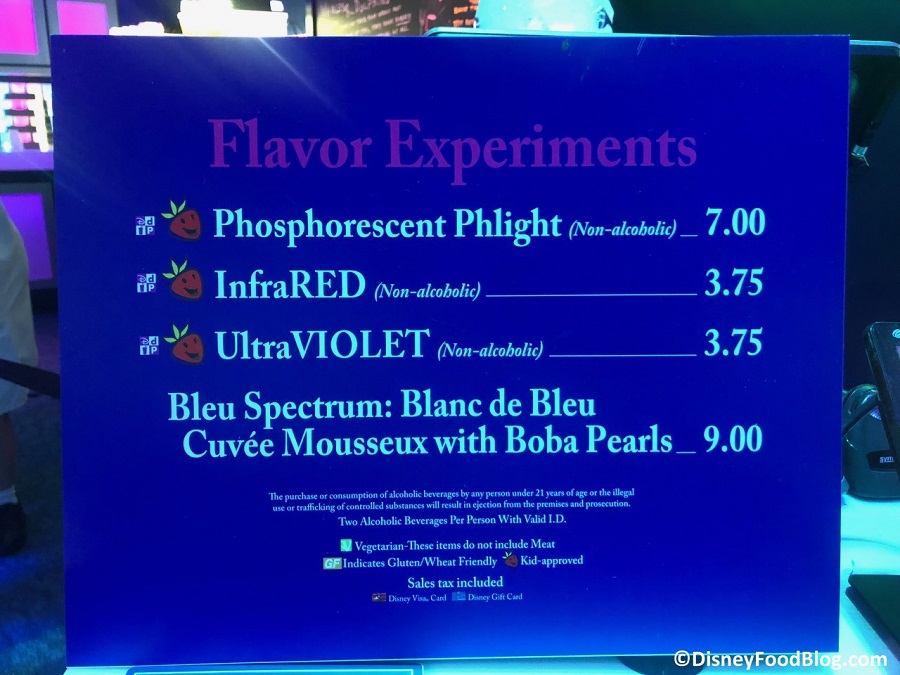 2018 Epcot Food and Wine Festival Light Lab Food Booth Menu