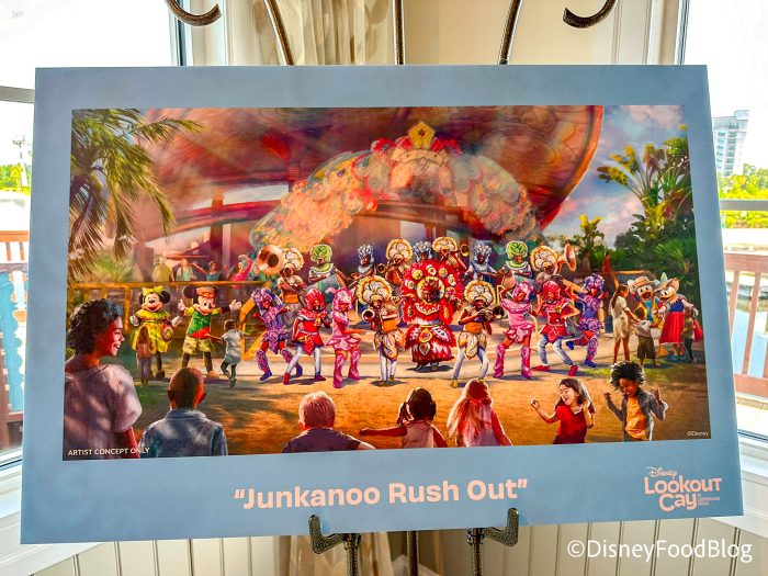 A Bahamian art and culture pavilion — The Goombay Cultural Center — is where you’ll find “special programs and local artists” providing fun learning opportunities to passengers! The Goombay Cultural Center is meant to “embody the essence of ‘Junkanoo,’ a Bahamian festival filled with joyous music and vibrant parades that will come to life in many ways across Disney Lookout Cay.”